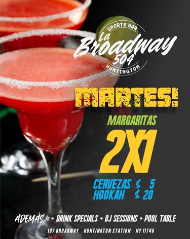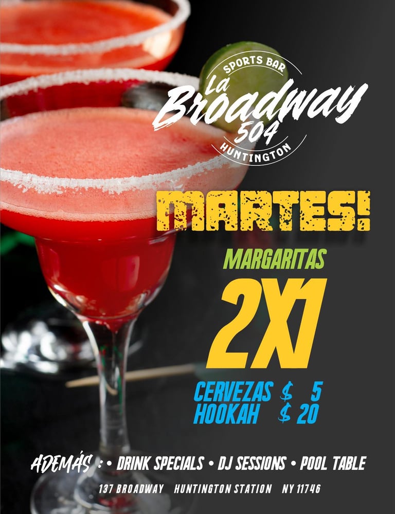 En La Broadway 504, Huntington Station, NY, la noche es para los que buscan música potente, cerveza fría y acción. DJs en vivo, happy hour, mesas de pool y el ambiente perfecto para disfrutar con amigos sin complicaciones.